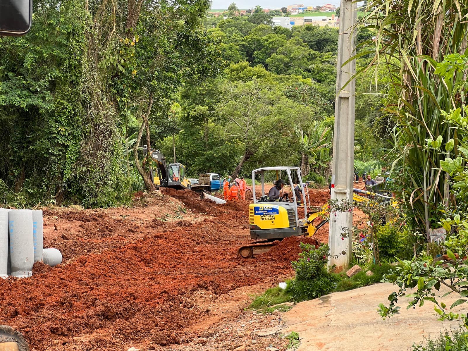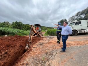 A empresa responsável é a Céu Azul Terraplanagem e Pavimentadora Ltda que realiza os serviços fornecendo e aplicando aduelas em concreto armado, muro de ala e galeria de escoamento de águas pluviais.