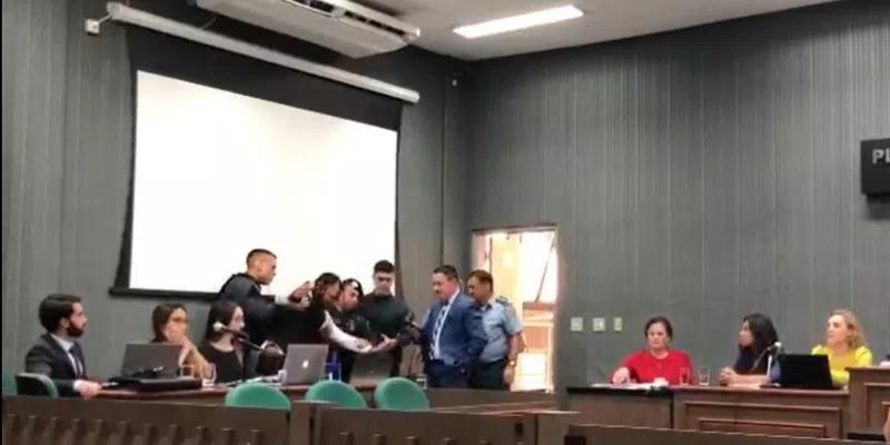 Após o juiz mandar os policiais retirarem o advogado, ele suspendeu a sessão. “Isso é para se aprender que aqui tem juiz. Quem decide as coisas aqui é o juiz. O advogado faz o papel de advogado“, disse.