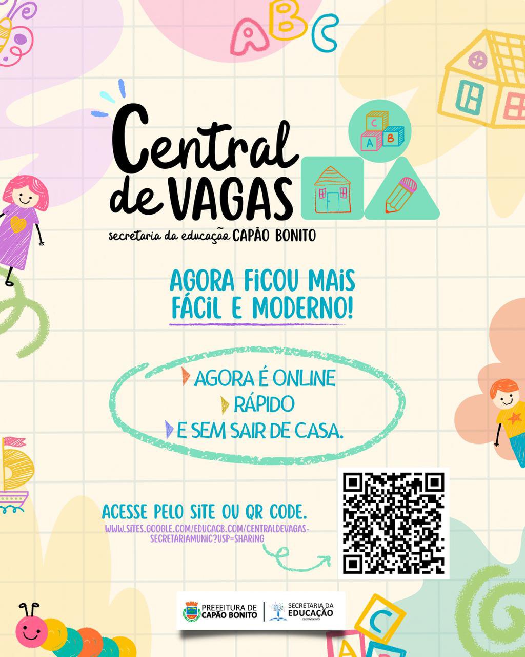 CENTRAL DE VAGAS NA EDUCAÇÃO | A Secretaria Municipal de Educação de Capão Bonito anunciou o lançamento do novo site da Central de Vagas, que passa a oferecer uma experiência ainda mais moderna, prática e intuitiva para as famílias do município.
