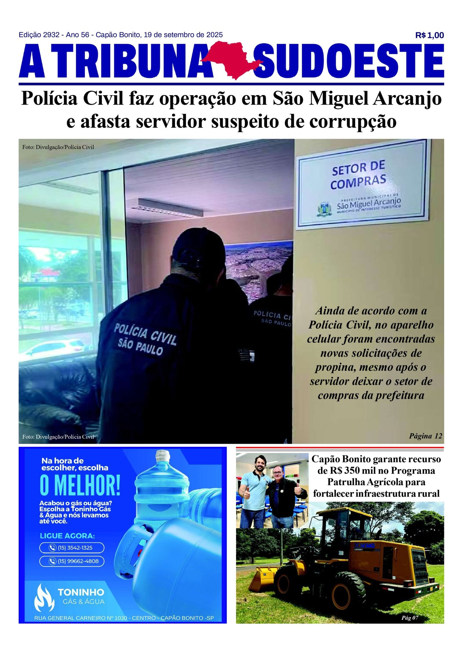 Polícia Civil faz operação em São Miguel Arcanjo e afasta servidor suspeito de corrupção