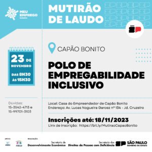 Mutirão do Governo de SP fornecerá laudo formal para pessoas com deficiência em Capão Bonito 03/11/2023