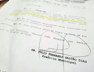 A medida foi oficializada por meio da assinatura da Portaria nº 112/26, de 30 de março, pelo prefeito Júlio Fernando, autorizando a realização de licitação na modalidade Pregão Eletrônico para a compra dos equipamentos.
