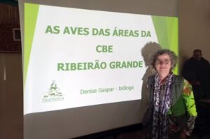 Na palestra, Denise apresentou as aves que fazem parte da fauna do Parque Estadual Intervales, que abriga mais de 400 espécies de pássaros, e mostrou como é a vida nativa da região, inclusive ouvindo gravações dos cantos dos pássaros.