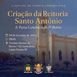 AÇÕES EVANGELIZADORAS | Capão Bonito viverá um momento histórico no campo religioso e comunitário com a inauguração da Reitoria Santo Antônio, que acontecerá no dia 04 de fevereiro de 2026, às 19h30, na Avenida Ademar de Barros, no bairro Vila Santa Rosa.