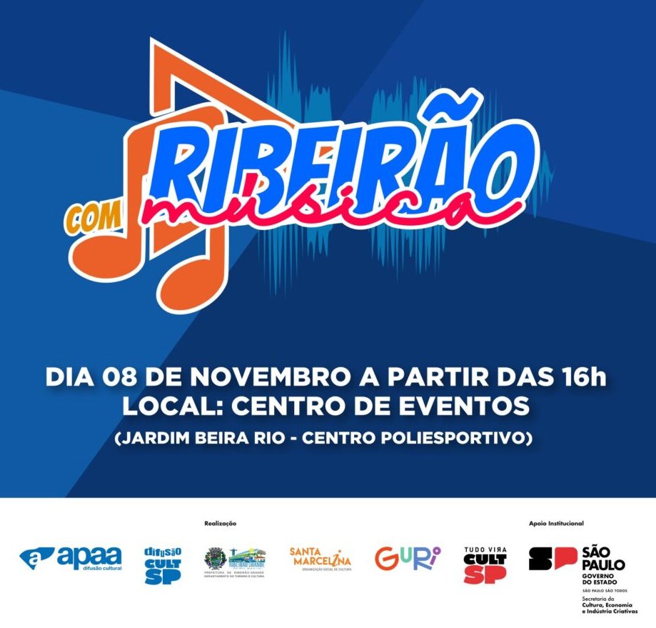 Com entrada gratuita, o “Ribeirão com Música” é uma oportunidade para celebrar o talento regional e fortalecer o espírito comunitário por meio da arte e da convivência.