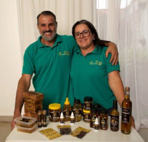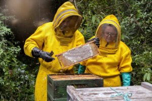 Outra empreendedora apoiada pela empresa é a apicultora Cibele Andrade, de Itatinga (SP). Integrante da Associação dos Apicultores do Polo Cuesta (Apicuesta), ela vem de uma família de apicultores e hoje trabalha ao lado do marido, dando continuidade ao legado iniciado por seu pai. Cibele participa do Programa de Apicultura, iniciativa da Suzano voltada ao fomento da apicultura sustentável. “O programa de apicultura tem sido uma grande ajuda para nós, apicultores. A parceria nos garante acesso às áreas de pasto apícola e faz diferença no nosso trabalho, contribuindo para o fortalecimento da cadeia produtiva do mel”, conta.