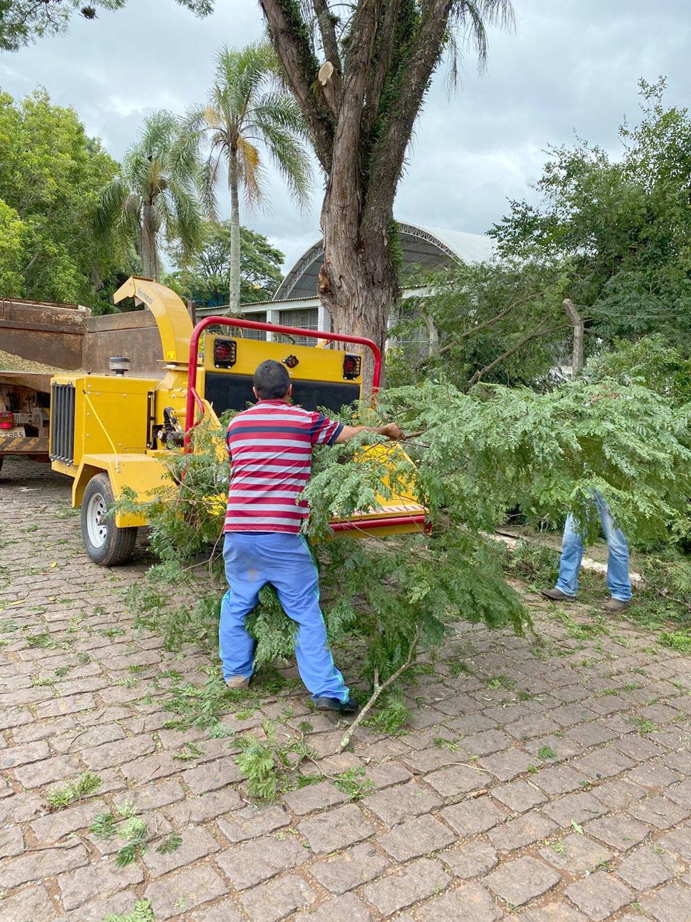 O triturador trabalhará em conjunto com a Divisão de Limpeza Pública quando forem realizados os serviços de poda e corte de árvores autorizados pelo Departamento de Meio Ambiente.