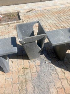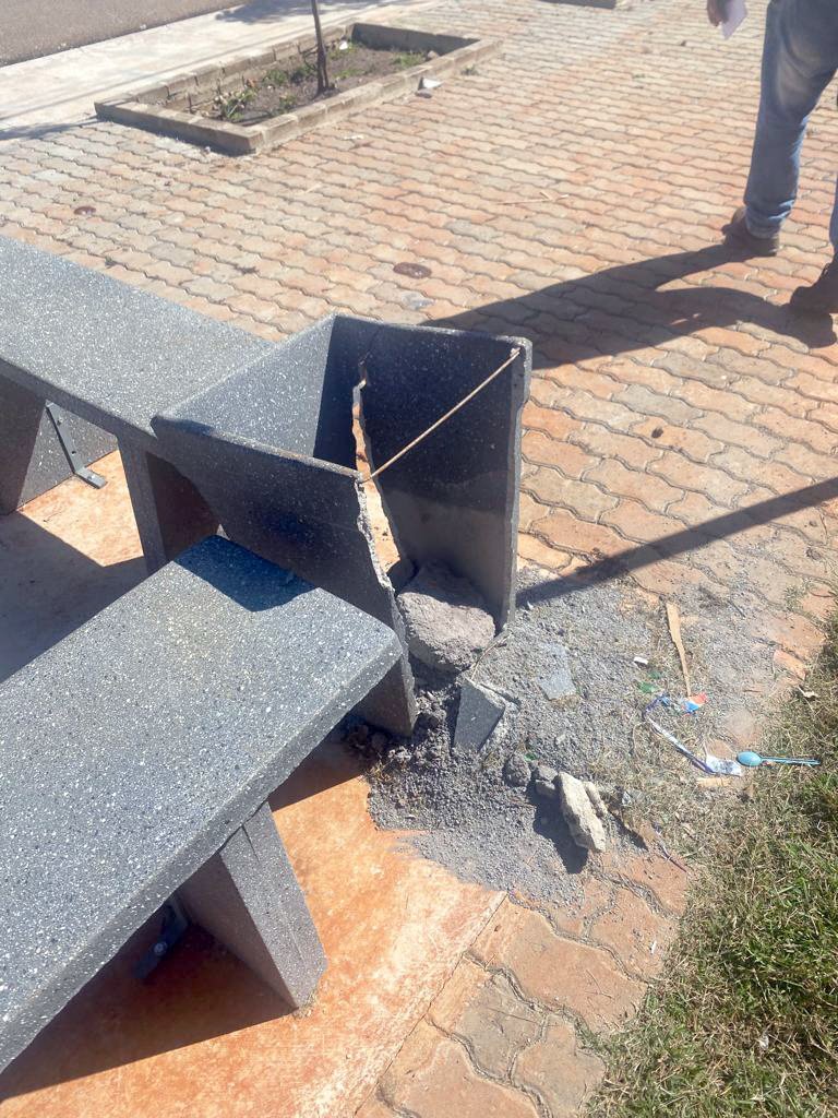 Foram pichados bancos e paredes e danificados alguns pontos da obra e vasos ornamentais.