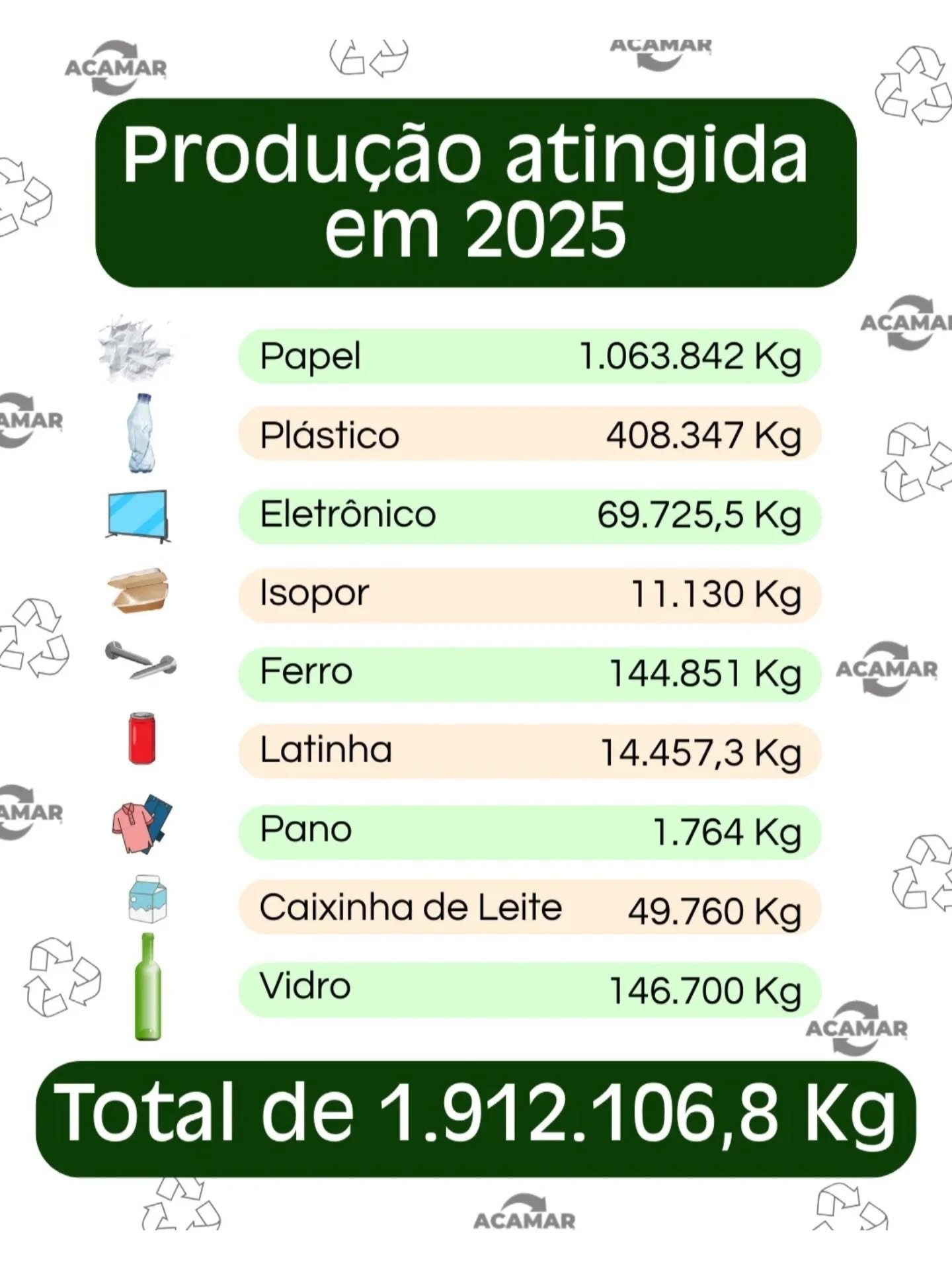 BALANÇO 2025 | A ACAMAR – Associação dos Catadores de Materiais Recicláveis – compartilhou com muita alegria os resultados de sua produção ao longo de 2025.